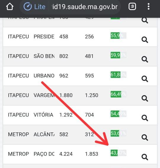 Um fato curioso apontou para a cidade de Paço do Lumiar, pois apesar do secretário municipal de saúde, João Muricy emitir nota afirmando que as vacinação na cidade seria interrompida por fakta de vacinas, o governador Flávio Dino demonstrou no portal de transparência que Muricy somente atingiu um pouco mais de 43% de vacinação.