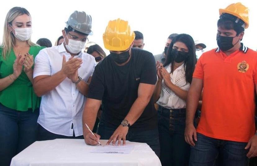 Do Conviver, onde aconteceu o café da manhã, a comitiva se direcionou até o bairro Olho D’Águinha, onde assinaram a Ordem de Serviço para a construção de uma Academia da Saúde.