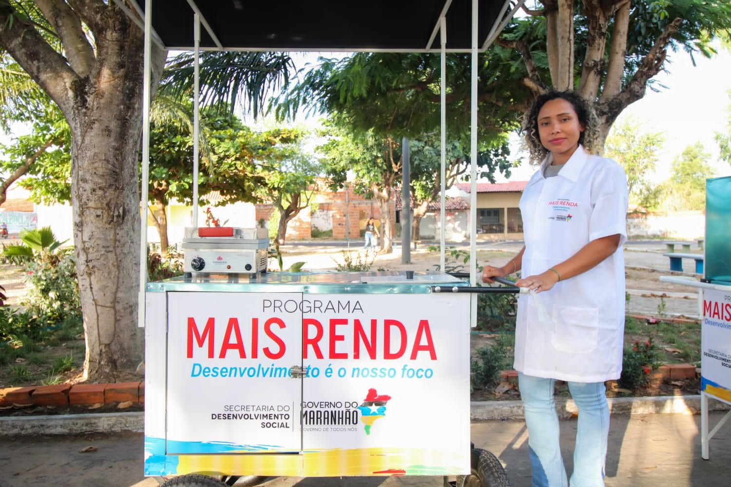 Para a beneficiária Luana de Souza, moradora de Araioses, ter em mãos o equipamento será a oportunidade para profissionalizar o seu negócio. “Antes, eu andava com um isopor oferecendo meus lanches, mas, agora, com esse carrinho, eu posso me locomover com mais facilidade e segurança, preservando ainda mais a qualidade dos meus produtos”, afirmou Luana, que recebeu um carrinho de crepe.