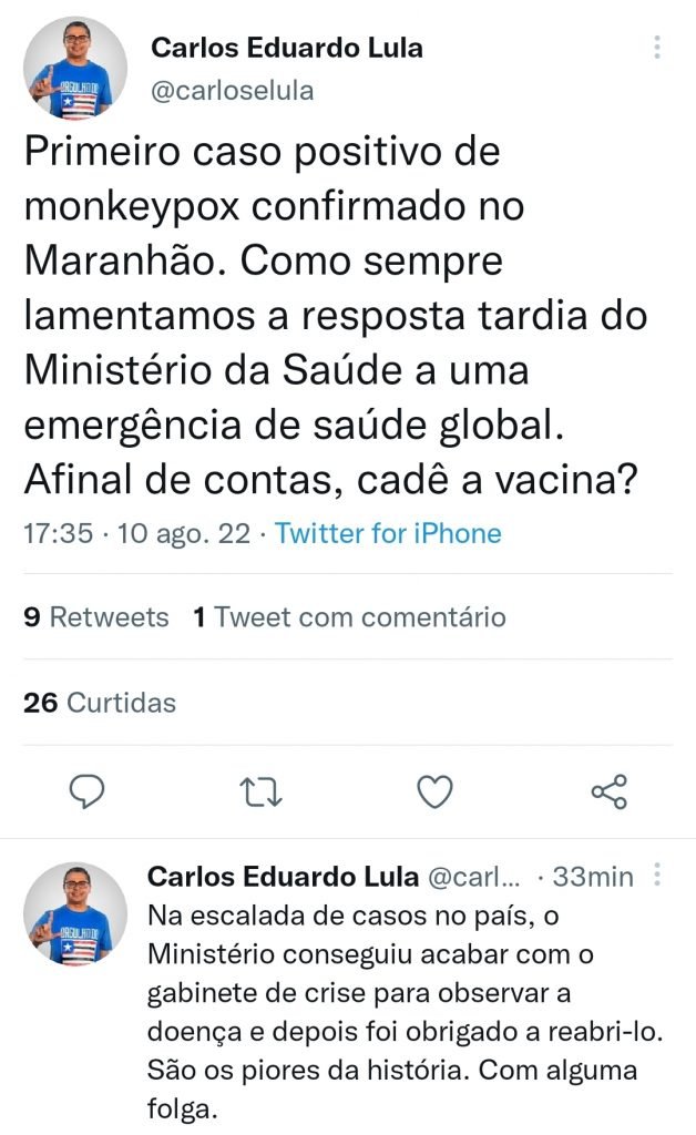 Carlos Lula lamenta lentidão do Ministério da Saúde em adquirir vacina contra Monkeypox