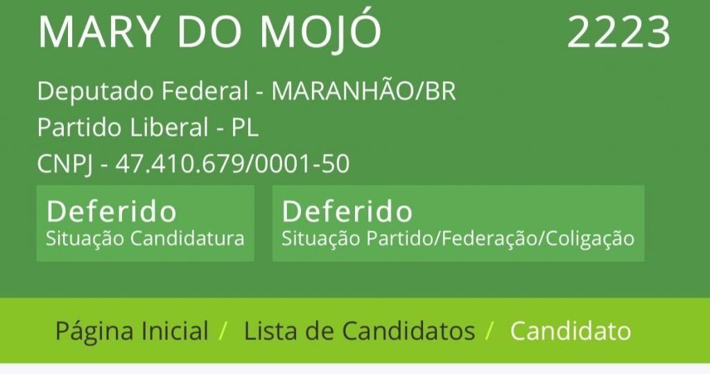 Está dando tudo certo! A candidatura a deputada federal de Mary do Mojó (PL) já está deferida no Tribunal Superior Eleitoral – TSE. Mary é forte na Região Metropolitana de São Luís, e está expandindo a sua campanha na baixada maranhense e na região dos lençóis maranhenses.