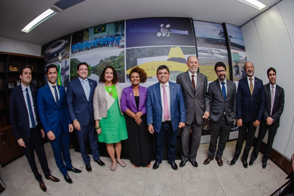 No MCTI a comitiva do Governo do Maranhão, comandada por Felipe Camarão – e que contou com a participação da diretora Geral do Iema, Cricielle Muniz, e dos deputados federais: Márcio Jerry e Duarte Jr, e do estadual Leandro Bello – participou de audiência com a ministra Luciana Santos e equipe.
