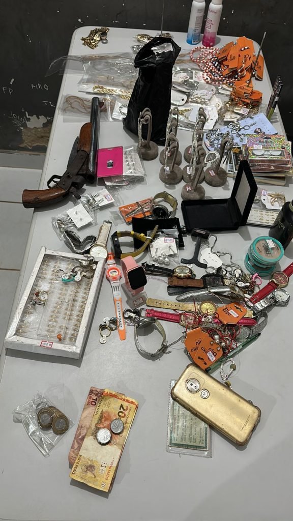O flagrante aconteceu por volta das 12h00, quando os dois estavam em uma motocicleta logo após sair da loja de bijuterias. Passando no local, estava o policial militar Wanderson Caldas do Lago, lotado no 20° BPM, atento com a situação bastante suspeita, resolveu dar a voz de prisão aos dois autores, que foram detidos até a chegada de uma guarnição da PM da área. Segundo informações das vítimas, a situação foi de grande violência por parte dos bandidos contra os funcionários, um deles chegou a passar mal no momento do delito.