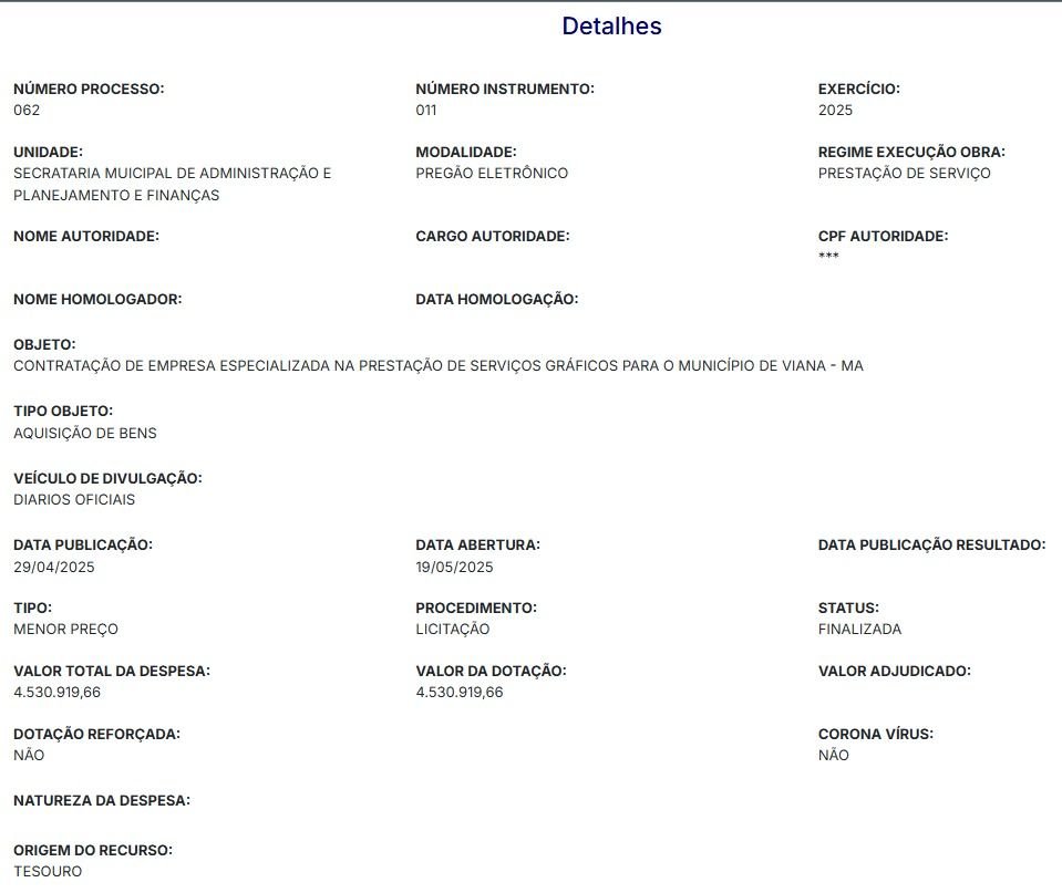 VIANA (MA) – A contratação de uma microempresa gráfica, localizada em Alto Alegre do Maranhão, para fornecer serviços gráficos ao município de Viana por mais de R$ 4,5 milhões, vem gerando forte repercussão e questionamentos entre moradores, servidores e especialistas em gestão pública.