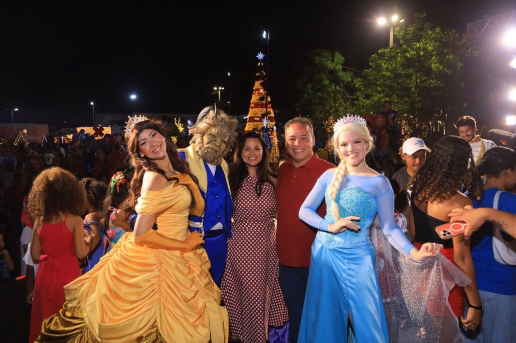 O prefeito Fred Campos acompanhou tudo de perto, ao lado da esposa Maedja Campos e das filhas Júlia e Sofia, celebrando com a população luminense mais uma noite de magia e alegria.