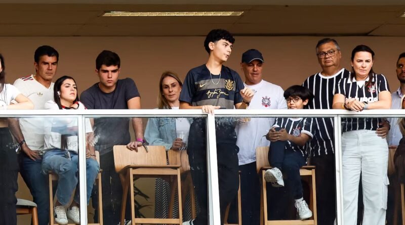 Os ministros Alexandre de Moraes e Flávio Dino, do STF (Supremo Tribunal Federal), acompanharam a vitória do Corinthians sobre o Flamengo na final da Supercopa Rei 2026 de um camarote no estádio Mané Garrincha, neste domingo (1º). Eles vestiam a camisa da equipe paulista e estavam acompanhados de familiares.
